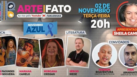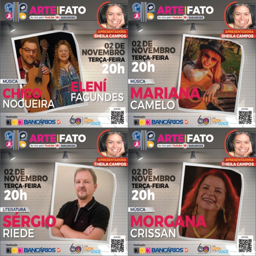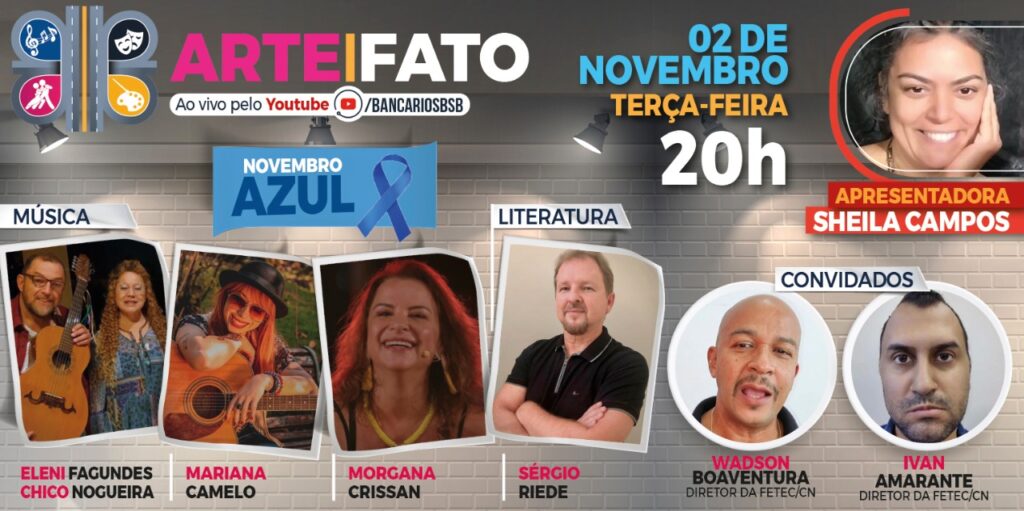 Penúltimo mês do ano, novembro promete. Nesta terça (2), a partir das 20h, o Sindicato promove a 15ª edição do Arte|Fato com muita música, literatura e boa conversa com Mariana Camelo, Eleni Fagundes e Chico Nogueira, Morgana Crissan e Sergio Riede. Além de celebrar os 60 anos do Sindicato, esta edição do projeto cultural da entidade também vai tratar da campanha do Novembro Azul, de prevenção ao câncer de próstata.
