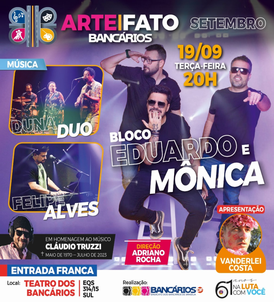 A presença de todos os bancários é fundamental para tornar essa noite ainda mais especial. Marquem suas agendas e preparem-se para um encontro memorável com a cultura e a música no "Arte|Fato". Este promete ser um evento que ficará na memória, unindo paixão, talento e a merecida homenagem ao músico Cláudio Truzzi.