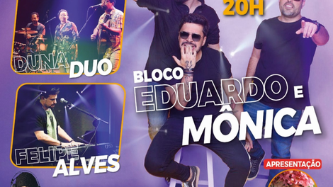 As atrações foram cuidadosamente selecionadas para proporcionar uma experiência única ao público presente. O palco será iluminado pelas performances envolventes do Bloco Eduardo e Mônica, do Duna Duo e de Felipe Alves. Cada atração trará seu próprio encanto e estilo, prometendo um espetáculo diversificado e emocionante.