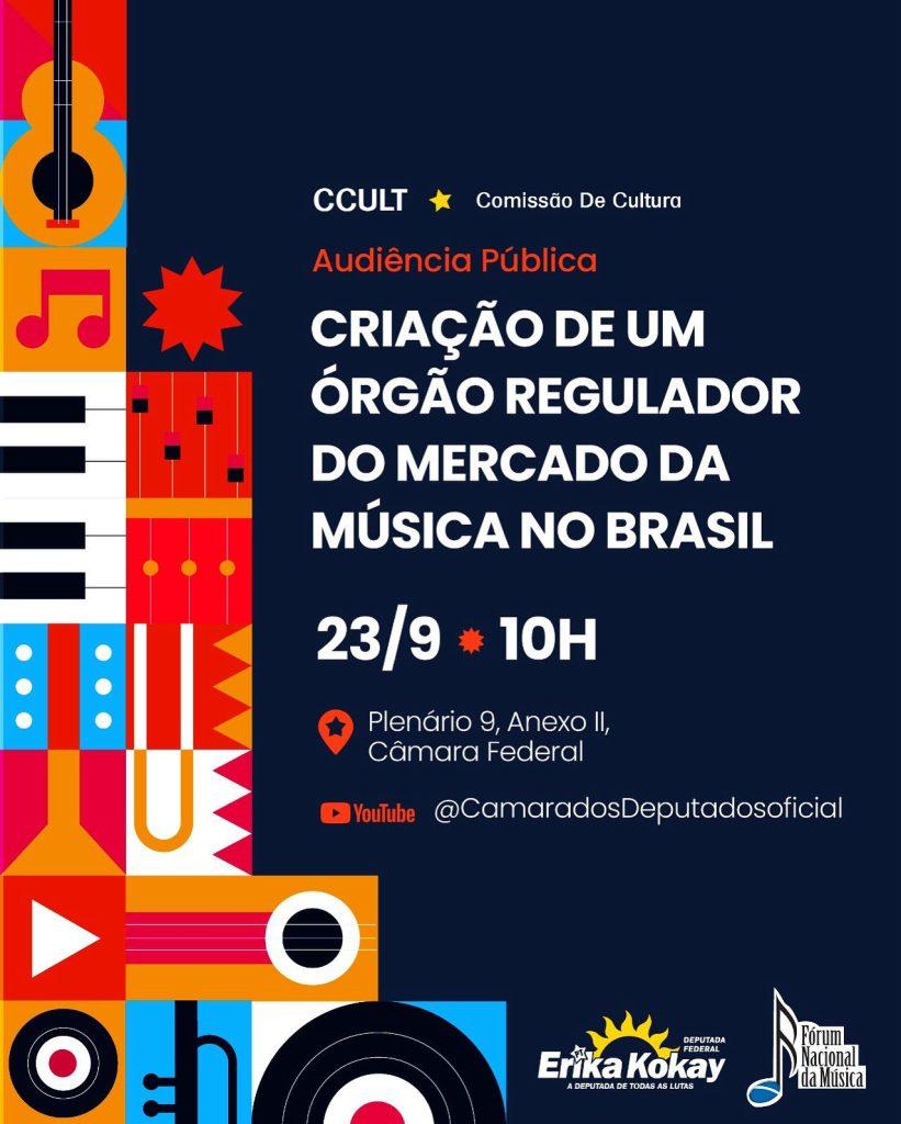 No próximo dia 23 de setembro, às 10h, a Comissão de Cultura da Câmara dos Deputados realiza uma audiência pública para debater a criação de um órgão regulador do mercado da música no Brasil, proposta também chamada de Agência Nacional da Música (Agemus). A iniciativa busca organizar o setor, garantir direitos, ampliar políticas públicas e dar maior sustentabilidade para artistas e trabalhadores da cadeia produtiva.