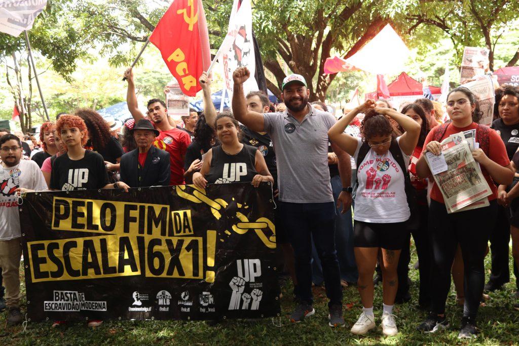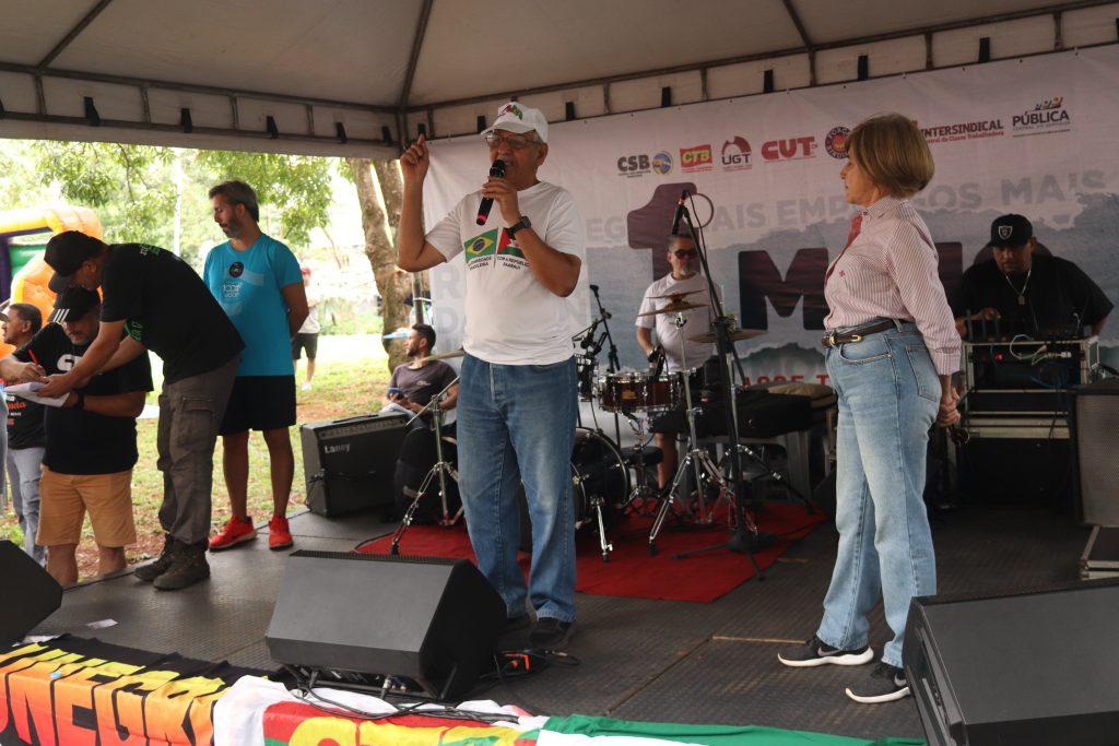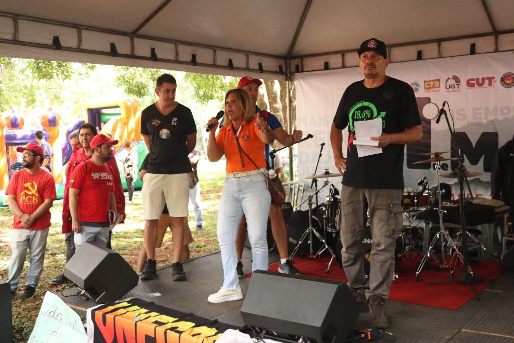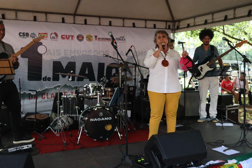 A deputada federal Erika Kokay (PT-DF) lembrou a história do dia 1° de Maio e a luta dos trabalhadores de Chicago pelo domínio de seu próprio tempo. E relacionou a grande mobilização de 1886 com a reivindicação atual da classe trabalhadora pelo fim da jornada 6x1.