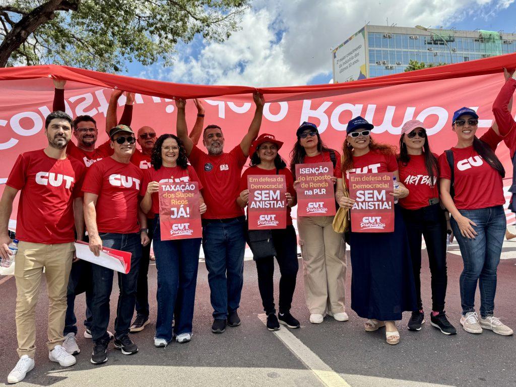 Brasília foi palco nesta terça-feira (29) da Marcha da Classe Trabalhadora, em mais uma ação que integra a Jornada Nacional de Lutas promovida pela Central Única dos Trabalhadores (CUT) e demais centrais sindicais. A mobilização, que antecede as celebrações do 1º de Maio – Dia do Trabalhador e da Trabalhadora –, reuniu bancários e trabalhadores de diversas categorias profissionais de todo o país na capital federal.