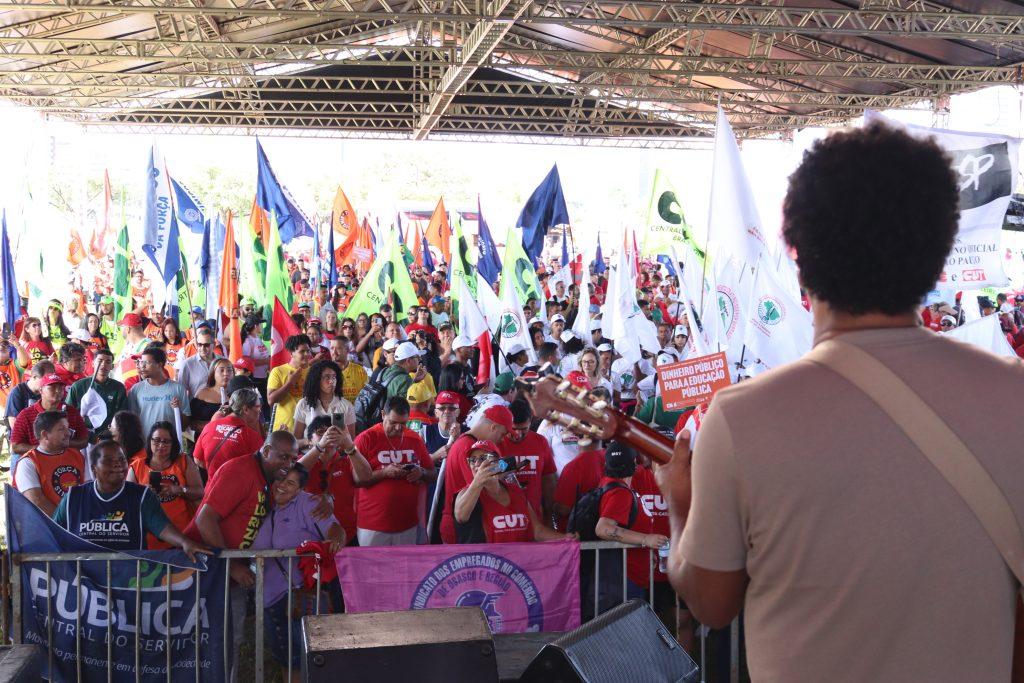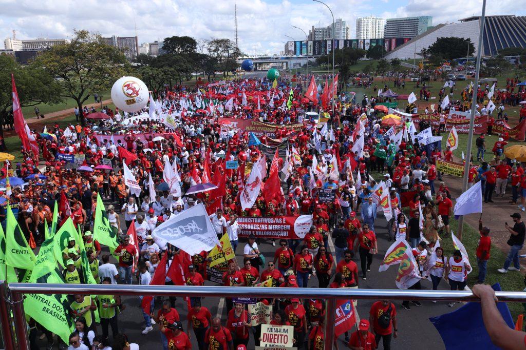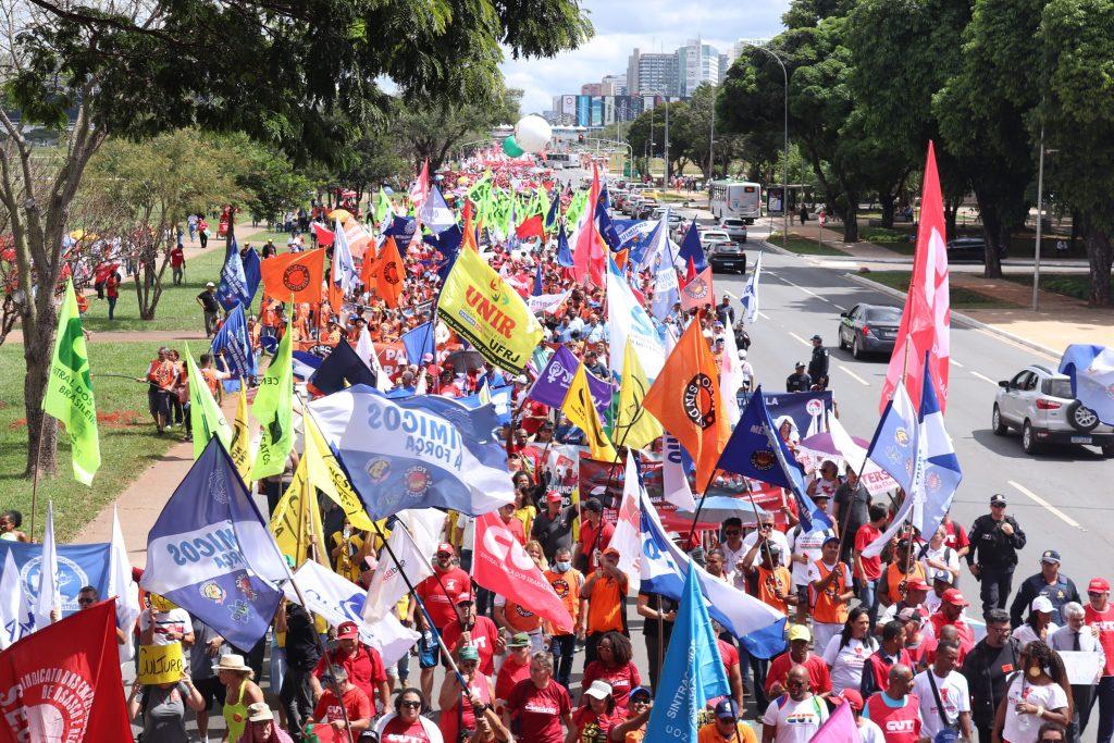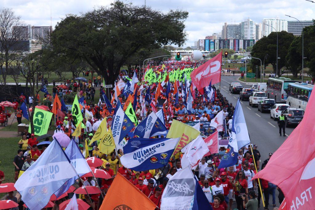 A mobilização começou com uma plenária na manhã de terça-feira, que aprovou a pauta da classe trabalhadora antes do início da marcha, que percorreu a Via N1 do Eixo Monumental até o Congresso Nacional.