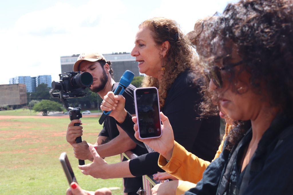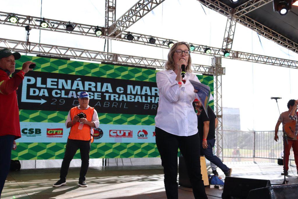 A diretora do Sindicato Samantha Sousa reforçou o compromisso do movimento com a defesa dos direitos dos trabalhadores, com ênfase nas mulheres. Ela afirmou que a presença na Esplanada dos Ministérios simboliza a luta por equiparação salarial, por ambientes de trabalho livres de assédio moral e sexual e pelo respeito aos direitos de todas e todos.