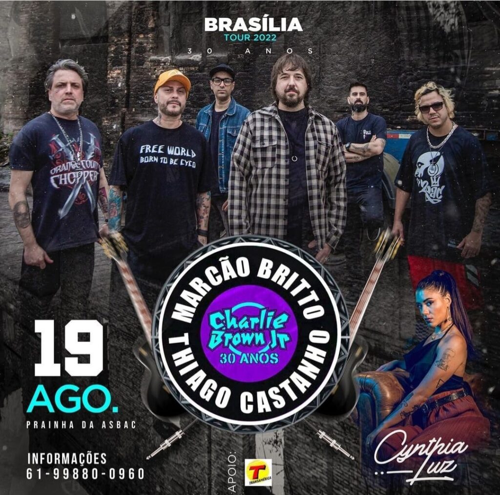 Depois de 9 anos longe dos palcos, a banda Charlie Brown Jr se reúne para comemorar dois momentos especiais de suas carreiras: o lançamento do projeto Marcão Britto e Thiago Castanho e os 30 anos do grupo. O vocalista da banda Tihuana, Egípcio, também participa da festa. O evento ainda contará com a apresentação da artista de hip hop Cinthia Luz.
