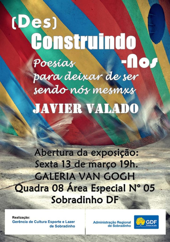 O fotógrafo e poeta argentino Javier Valado expõe suas obras até 24 de abril na Galeria Van Gogh, em Sobradinho. A abertura da exposição ‘(Des)Construindo-nos: Poesias para deixar de ser sendo nós mesmxs’ está marcada para a próxima sexta-feira (13), a partir das 19h.