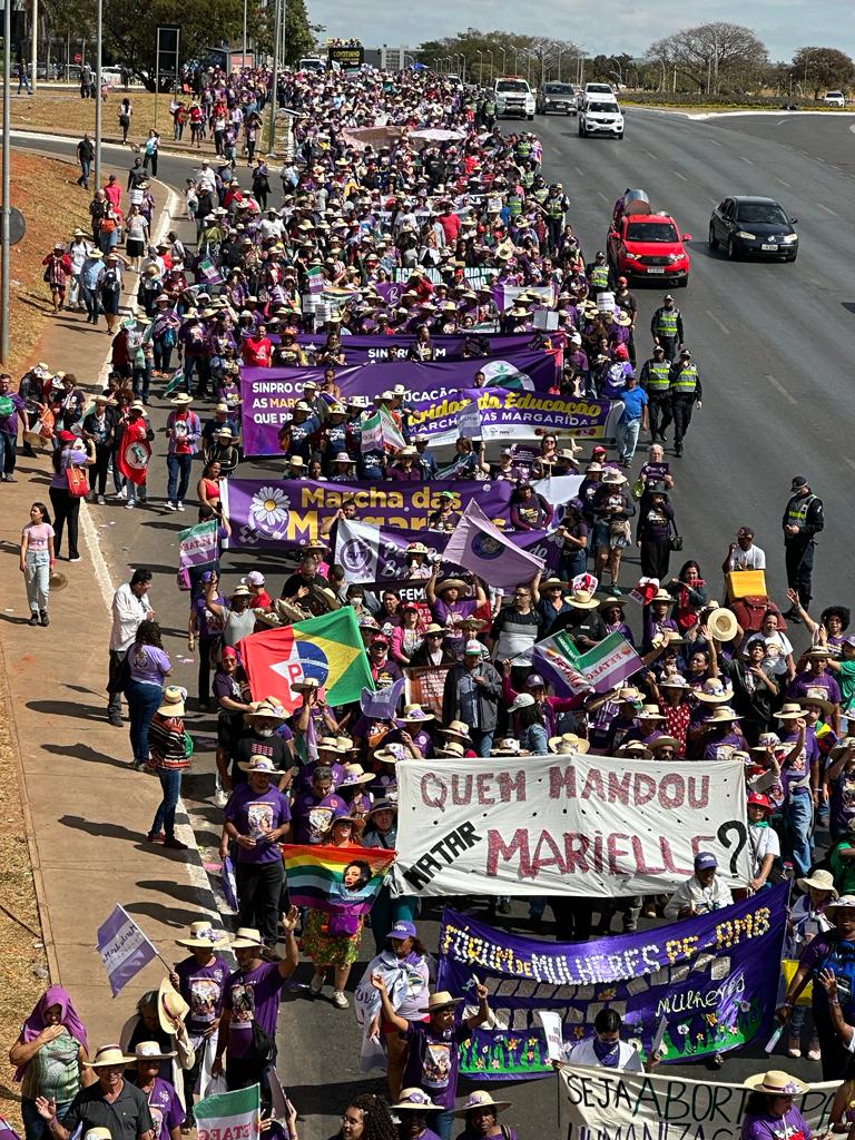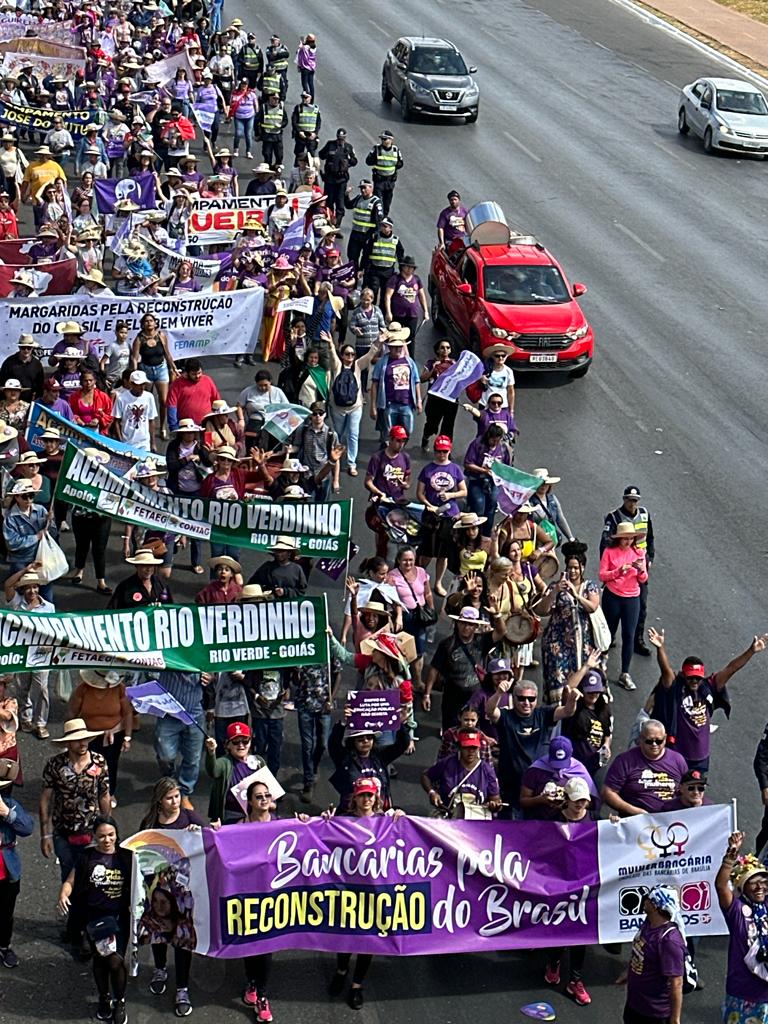 Um prenúncio da primavera ocorreu na manhã desta quarta-feira (16) pelas ruas de Brasília. Com o lema "Pela reconstrução do Brasil e pelo bem viver", mais de 100 mil mulheres participaram da 7ª Marcha das Margaridas. A Marcha, que partiu do Parque da Cidade em direção à Praça dos Três Poderes, atraiu representantes de todas as regiões do país, pessoas de todas as faixas etárias e trabalhadoras de todos os setores.