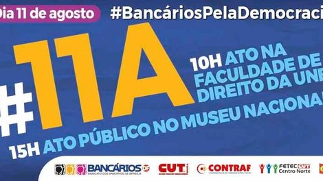 O Sindicato convoca a categoria bancária a engrossar nas ruas e nas redes as manifestações convocadas para este 11 de agosto, quinta-feira, e destaca a importância da adesão de cada bancário e cada bancária à “Carta aos Brasileiros, em Defesa da Democracia” elaborada e divulgada no dia 26 de julho por ex-alunos da Faculdade de Direito da Universidade de São Paulo (USP).