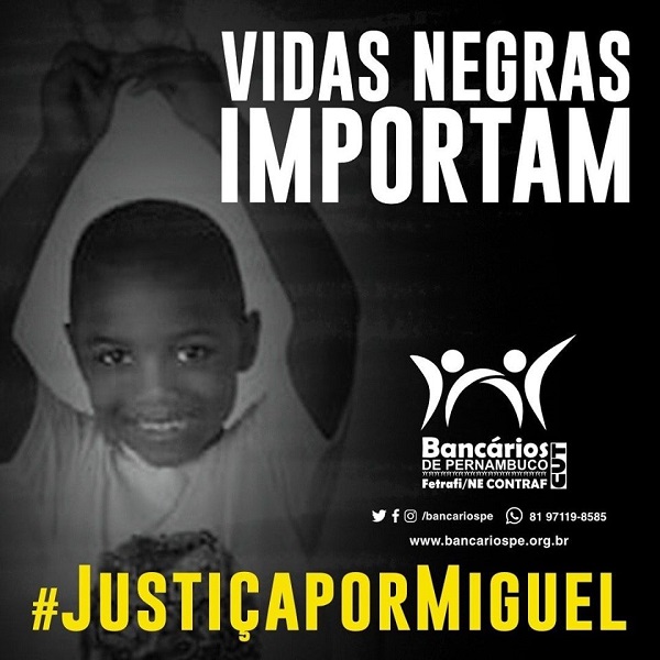 A morte de Miguel é reflexo da desvalorização da vida da população negra, numa sociedade capitalista, racista e discriminatória. Exigimos justiça por Miguel e por todo povo negro!