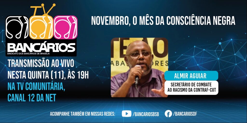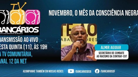 O TV Bancários desta quinta-feira (11) se dedica às questões em debate no decorrer de novembro, o mês da consciência negra no Brasil. O convidado do programa é Almir Aguiar, secretário de Combate ao Racismo da Confederação Nacional dos Trabalhadores do Ramo Financeiro (Contraf-CUT) e militante do Movimento Negro Unificado (MNU).