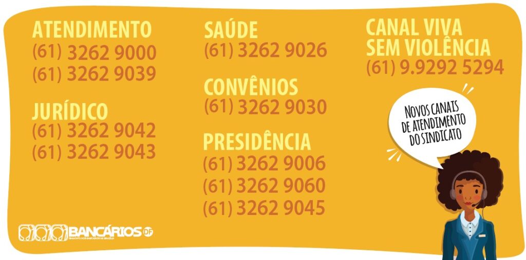 O novo sistema de atendimento por telefone fixo do Sindicato dos Bancários de Brasília já está funcionando. Além da central geral de atendimento, o bancário poderá ligar diretamente para os setores da Saúde, Jurídico, Presidência e Convênios.