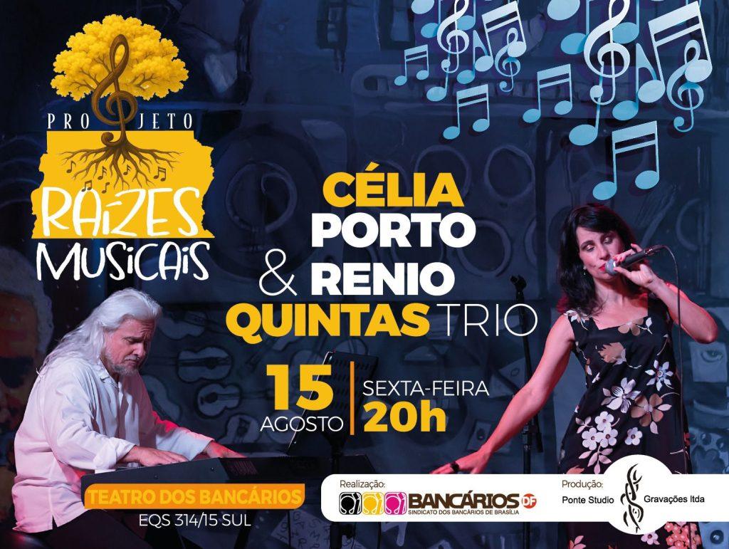 A força vocal de Célia Porto e a sofisticação instrumental de Rênio Quintas se unem em show, no dia 15 de agosto (sexta-feira), no segundo show do projeto Raízes Musicais, que desembarca às 20h, no Teatro dos Bancários