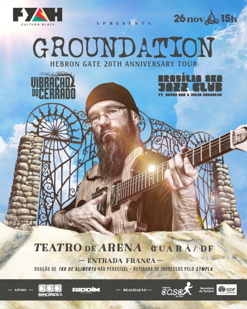 Considerada uma das maiores forças do reggae mundial contemporâneo, o Groundation está celebrando os 20 anos do seu icônico álbum "Hebron Gate". Pela primeira vez na América do Sul, a banda irá tocar o Hebron na íntegra, além de outros sucessos como Freedom Taking Over, Jah Jah Know, Something More, Undivided, Babylon Rule Dem e Picture On The Wall, na sequência do álbum.