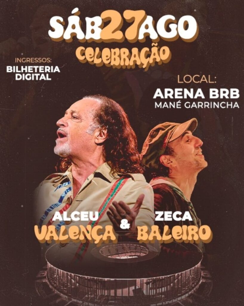 O show dos artistas, grandes nomes da música brasileira, promete. O evento Celebração marca o encontro de duas vozes emblemáticas da musicalidade em uma festa que terá vários clássicos do repertório de Alceu e Zeca.
