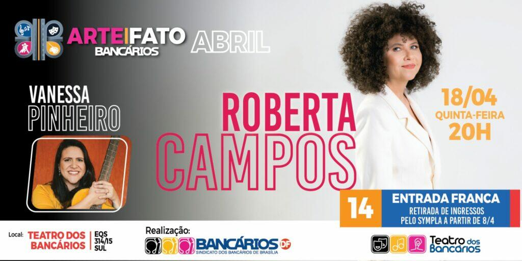 Roberta apresenta esse repertório em voz e violão. Além de canções como “Linha do Equador”, “Paisagem na Janela” e “Não Vá Embora”, não faltarão os sucessos de Roberta como “De Janeiro a Janeiro” e “Minha Felicidade”.