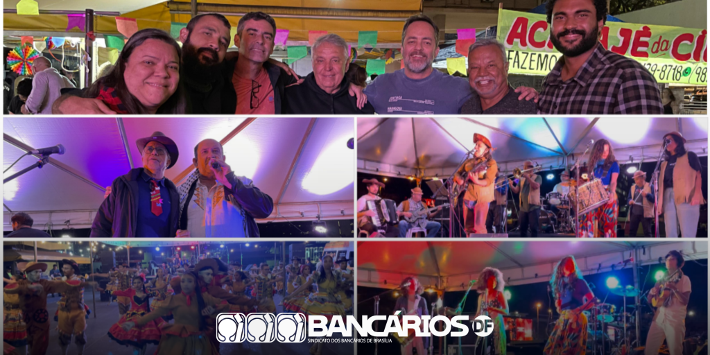 Na noite que marcou o início do inverno, dia 21, uma sexta-feira, o Sindicato realizou na Praça do Cebolão, no Setor Bancário Sul, a Festa Junina dos Bancários, reunindo a categoria e populares em um encontro regado a música popular brasileira, especialmente forró, apresentação de quadrilha e que contagiou de alegria todos que lá estavam.
