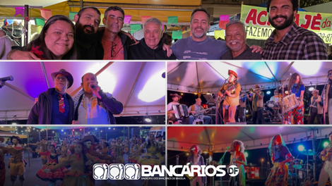 Na noite que marcou o início do inverno, dia 21, uma sexta-feira, o Sindicato realizou na Praça do Cebolão, no Setor Bancário Sul, a Festa Junina dos Bancários, reunindo a categoria e populares em um encontro regado a música popular brasileira, especialmente forró, apresentação de quadrilha e que contagiou de alegria todos que lá estavam.