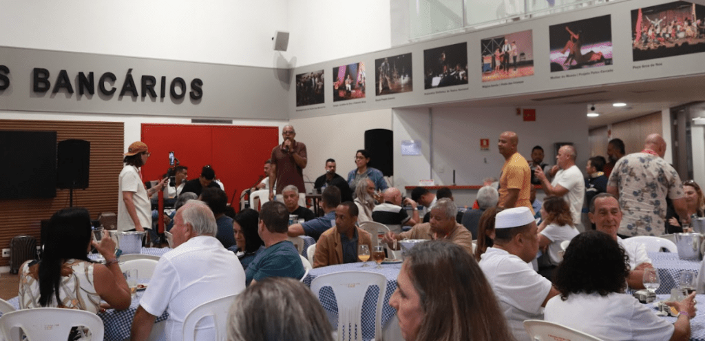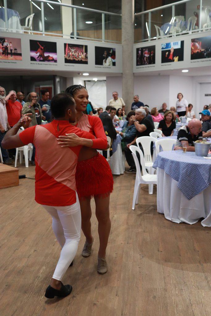 Muita energia e alegria deram o tom do Boteco dos Pais e Avós Bancários Aposentados, promovido pelo Sindicato na sexta-feira (16), à noite. Mais de 200 homenageados, acompanhados de familiares, lotaram o foyer do Teatro dos Bancários, e se divertiram bastante ao som contagiante do grupo Pagode do Chama. Teve também apresentação dos dançarinos da Academia Planet, que deram um show de forró e samba de gafieira.