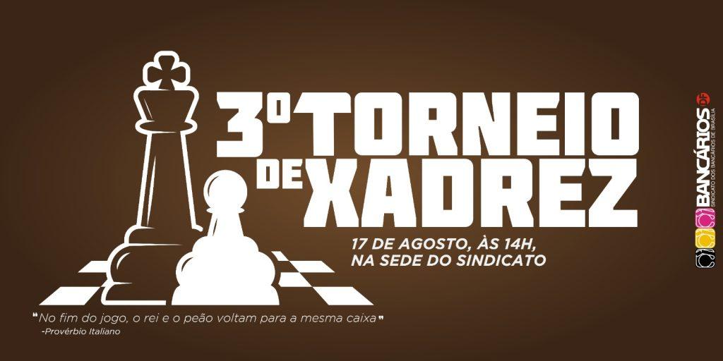 Com o objetivo de promover o entretenimento, o lazer e a integração entre os enxadristas, o Sindicato realizará o 3º Torneio de Xadrez de Integração das Bancários e Bancários, em alusão ao Dia do Bancário, comemorado em 28 de agosto. O evento é aberto a bancários e a toda a comunidade, e será realizado no dia 17 de agosto, com início às 14h, na sede da entidade (EQS 314/315 - Asa Sul).