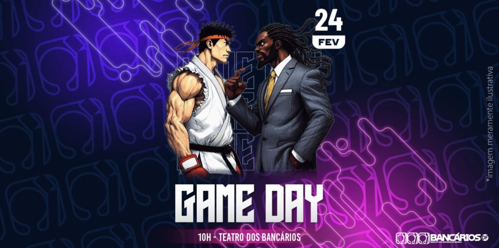 Prepare o seu console e seus controles, pois o Sindicato está entrando no mundo dos games. Em um esforço para proporcionar momentos de união e diversão, estamos organizando um Game Day, que promete agitar a galera. Será neste sábado (24), das 10h às 16h, no Teatro dos Bancários, na sede do Sindicato (EQS 314/315 - Asa Sul).