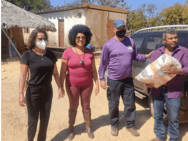O vínculo entre o Sindicato e as comunidades Kalunga começou por iniciativa da historiadora Eleuza Pereira, pesquisadora do território quilombola e moradora de Teresina de Goiás. Sensibilizada com a situação dos Kalungas durante a pandemia, Eleuza buscou apoio junto a entidades parceiras, até chegar ao Sindicato. A resposta foi imediata: diretores do Sindicato estiveram pessoalmente em Teresina levando centenas de cestas básicas às comunidades de Ema, Diadema, Limoeiro, Escalda, Jatobá e Abobreira.