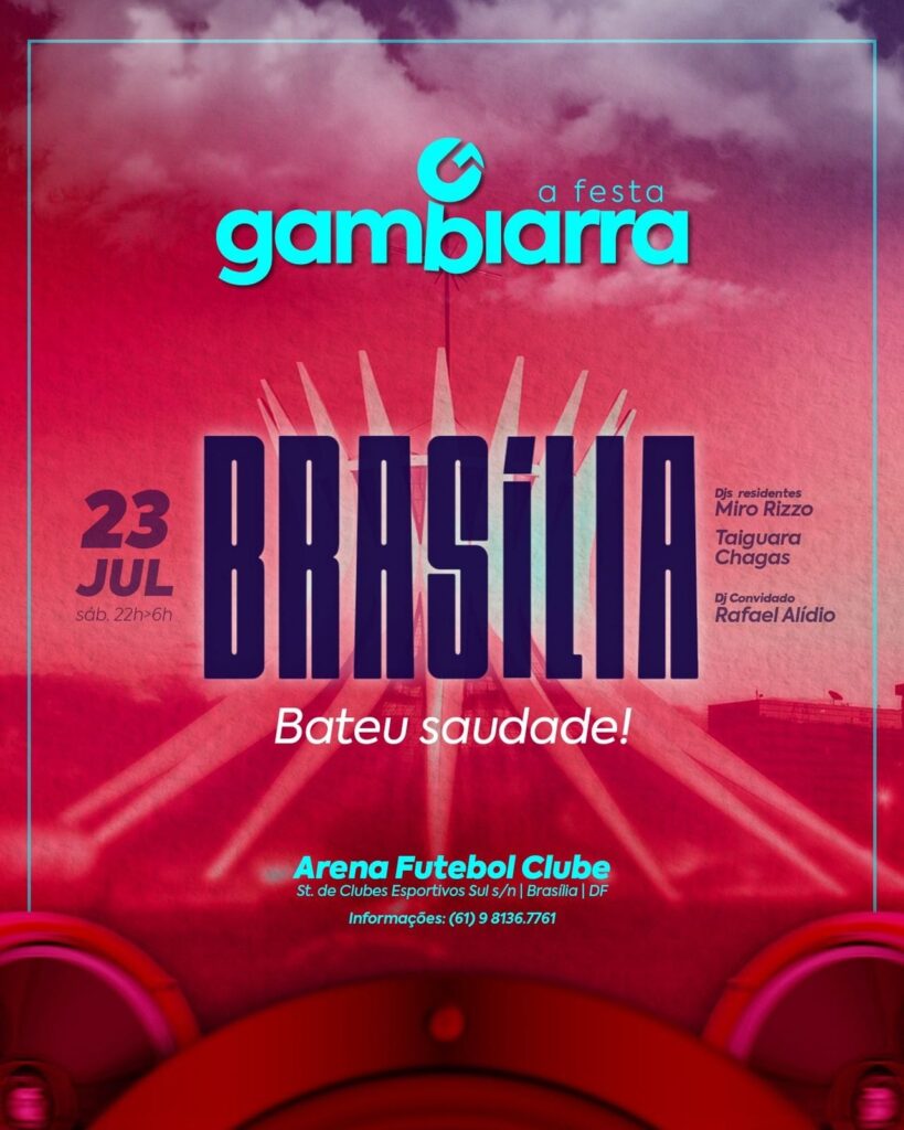 A festa Gambiarra está de volta para matar a saudade de quem ama se divertir em um ambiente irreverente e descolado. Criada em São Paulo, a festa desembarca na capital federal prometendo boa música e muita diversão. Essa Gambiarra é tão boa que começa no sábado, dia 23, às 22h, e só termina às 6h do domingo.