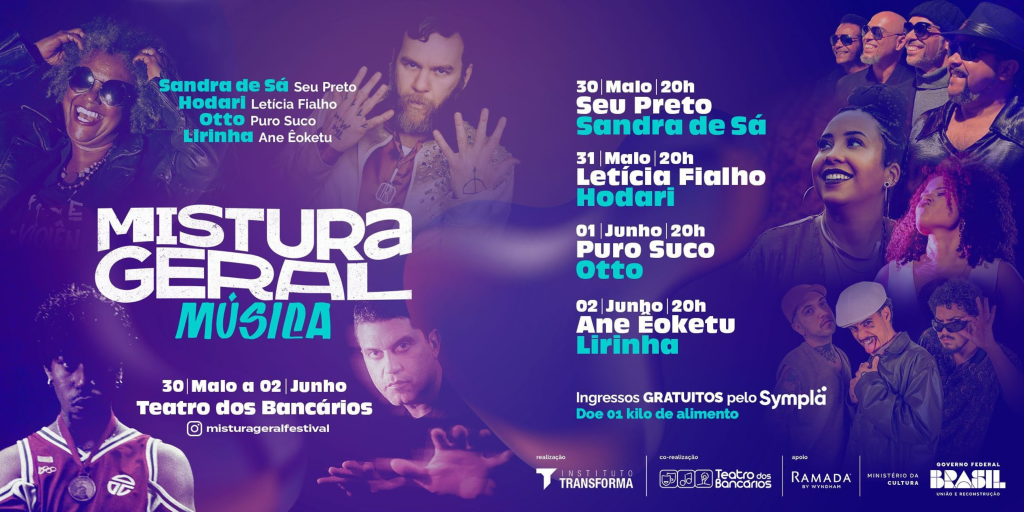 O Mistura Geral é uma realização do Instituto Transforma em parceria com o Teatro dos Bancários, com recurso do Fundo Nacional de Cultura, por meio de Termo de Fomento com o Ministério da Cultura/Governo Federal.