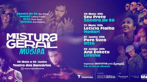 O Mistura Geral é uma realização do Instituto Transforma em parceria com o Teatro dos Bancários, com recurso do Fundo Nacional de Cultura, por meio de Termo de Fomento com o Ministério da Cultura/Governo Federal.