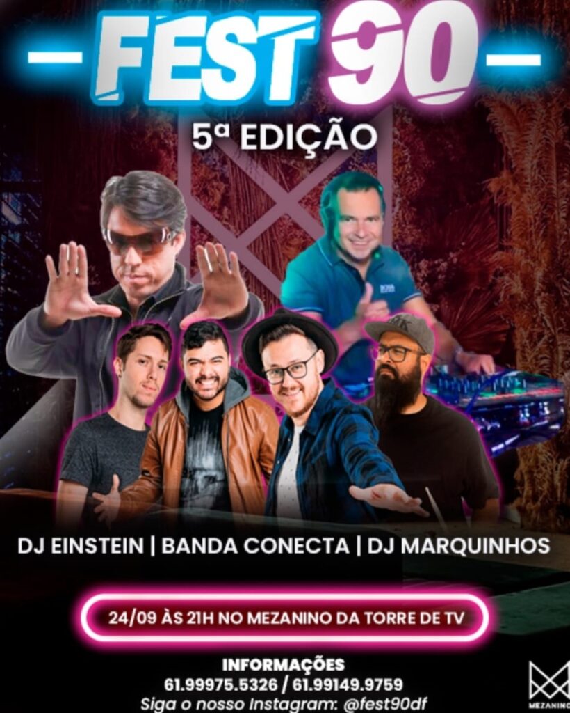 Também no dia 24, os contemplados poderão curtir a 5ª edição da Fest 90, que vai rolar no Mezanino da Torre de TV, às 21h. As atrações estão imperdíveis: Banda Conecta e os Djs Einstein e Marquinhos.