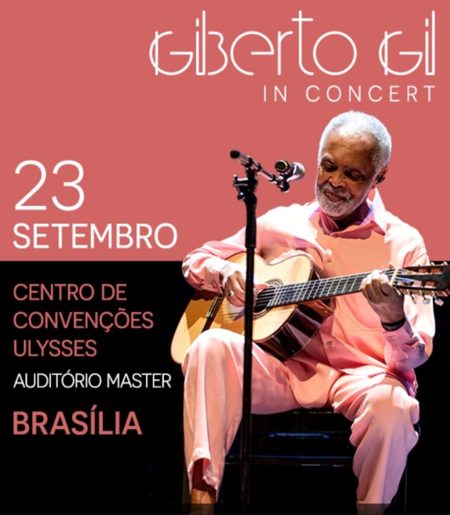 Gilberto Gil chega a Brasília com a turnê Gilberto Gil In Concert. Após lotar shows no Brasil e no mundo com a turnê, o músico baiano abre data extra para mais uma apresentação na capital – além do dia 23, ele se apresenta também no dia 24 de setembro, no Centro de Convenções Ulysses Guimarães, sempre às 21h30.