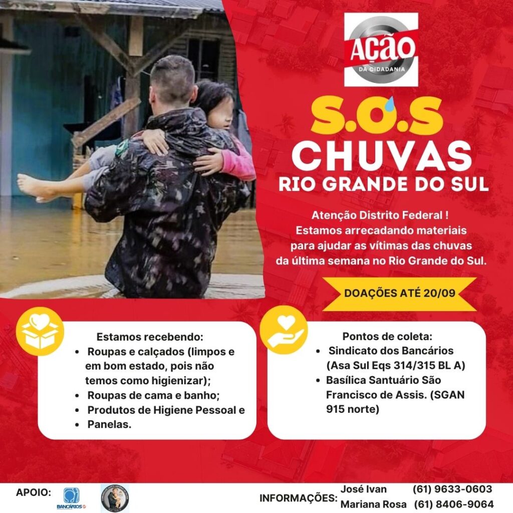 Numa ação conjunta com o Sindicato dos Professores (Sinpro/DF), o Comitê DF/RIDE/GO da Ação da Cidadania Contra a Fome, a Miséria e Pela Vida e a Basílica Santuário São Francisco de Assis, o Sindicato está arrecadando roupas e calçados, roupas de cama e banho, produtos de higiene pessoal e panelas.