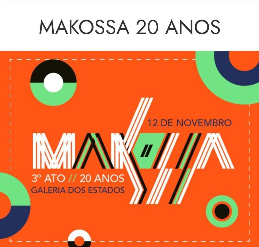 A terceira e última festa em celebração aos 20 anos da grande festa Makossa acontece no próximo sábado (12) na Galeria dos Estados, às 22h. O tradicional baile recebe Dj Nu-Mark (Jurassic 5), Ketlen Niggaz, Chicco Aquino Feat Bell Lins & Taliz, Umiranda, Luísa Viscardi (SP), Chokolaty e Tiago Gioseffi.