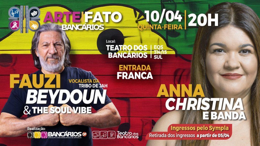 O Teatro dos Bancários será palco de uma noite especial nesta quinta-feira (10), com a 38ª edição do ArteFato. O destaque da programação é o show de Fauzi Beydoun & The Soul Vibe, que promete levar ao público uma apresentação repleta de energia positiva, com muito reggae e blues. A entrada é franca, mediante retirada antecipada de ingressos pelo Sympla.
