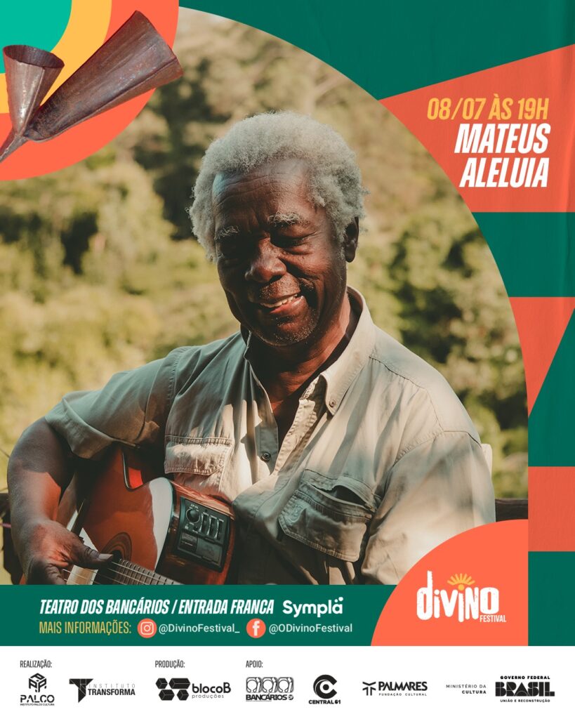 E, em clima festivo, logo depois vem o baiano Mateus Aleluia, autoridade artística cultural com 63 anos de trajetória, tendo como enredo principal a cultura afro-brasileira, apresentando sua música que ressalta as conexões entre a história do Brasil e da África.