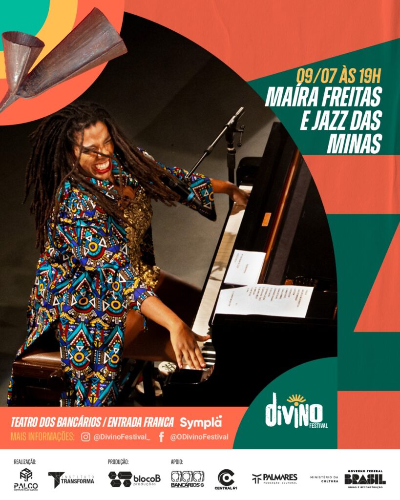 Também tem Maíra Freitas e Jazz das Minas. Acompanhada de sete mulheres, Maíra traz o show Ayé Òrun, uma celebração à música autoral feminina e negra.