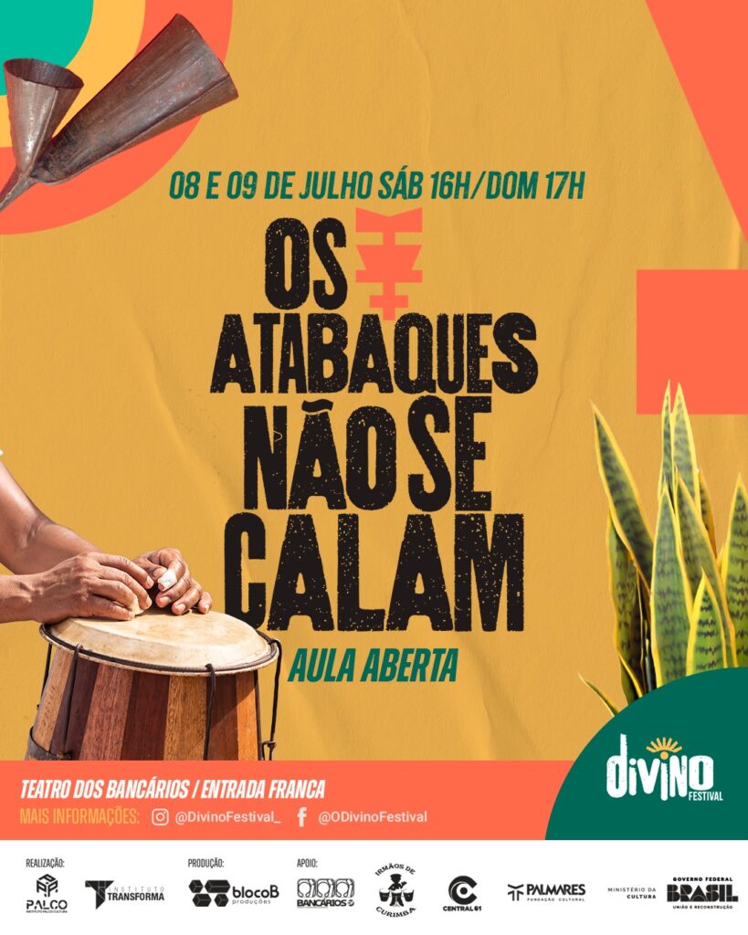 Numa promoção das manifestações do legado do continente africano presente no Brasil, o Teatro dos Bancários recebe nos dias 8 e 9 de julho o Divino Festival, com o tema Cultura de Matriz Africana.