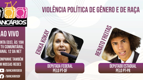 O TV Bancários desta quinta-feira (3) recebe duas expressões da luta por causas populares, sociais e libertárias, em defesa dos direitos humanos e da diversidade, contra o arbítrio, ódio e mentira: Erika Kokay, deputada federal pelo PT-DF, e Renato Freitas, deputado estadual pelo PT-PR.