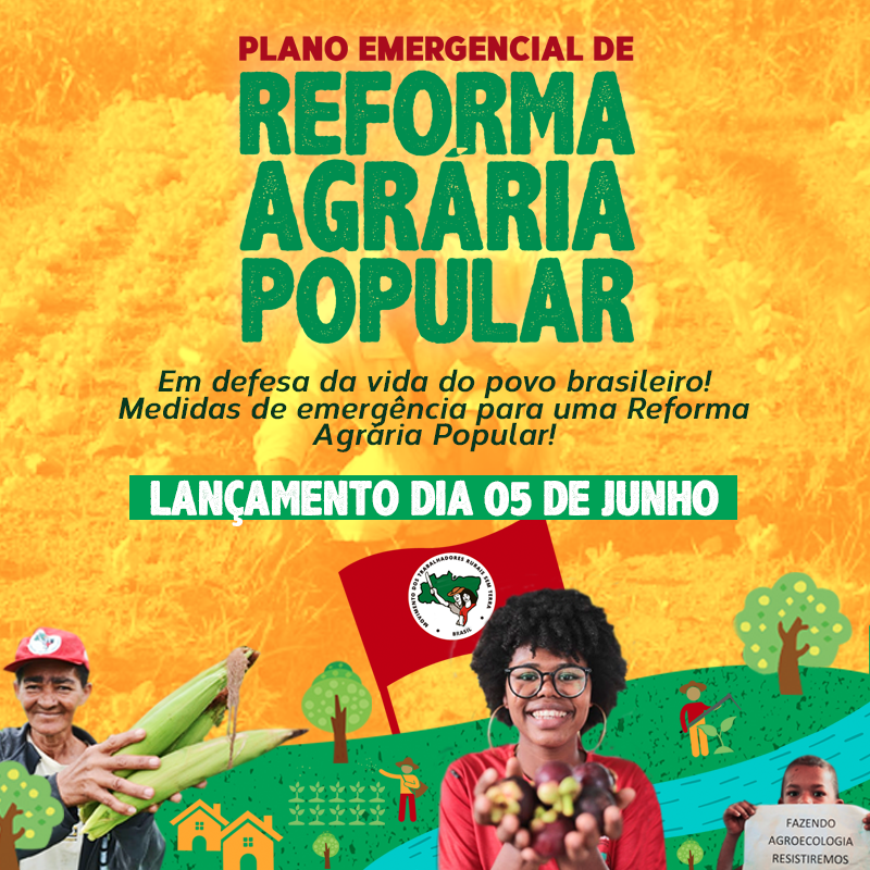 Nesta próxima sexta-feira (5), Dia do Meio Ambiente, a partir de 11h, o Movimento dos Trabalhadores Sem Terra do DF e Entorno lançará o Plano Emergencial da Reforma Agrária, plano que apresenta medidas concretas para enfrentar a crise econômica e social que atinge o país em decorrência da pandemia do novo coronavírus. O Sindicato participa do lançamento, que será transmitido pela TV Comunitária de Brasília.