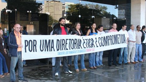 ![]() | O Sindicato realizou nesta quarta-feira pela manhã, em frente à sede do BRB, uma manifestação em defesa da |