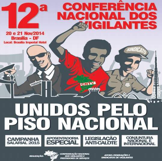 Vigilantes de todo o país estão convidados para participar da 12ª Conferência Nacional dos Vigilantes. O evento será realizado em Brasília nos dias 20 e 21 de novembro e tem como principal objetivo a preparação para a Campanha Salarial 2015.