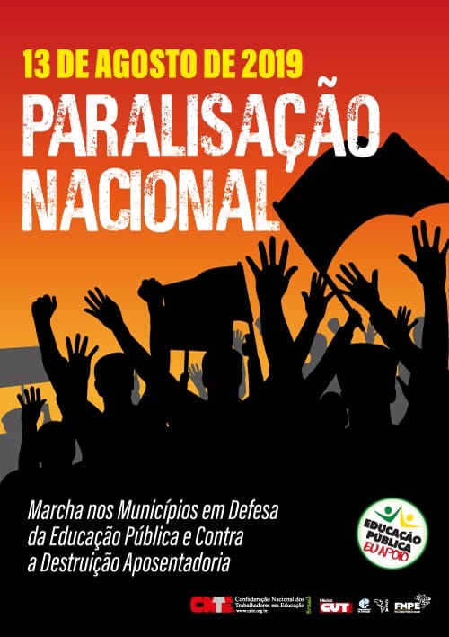 Para repetir as grandes mobilizações que a Central Única dos Trabalhadores (CUT), demais centrais, UNE e movimentos sociais vêm fazendo desde abril contra a Proposta de Emenda à Constituição (PEC) nº 06/2019 e cortes na educação, a CUT decidiu se somar à mobilização da Confederação Nacional dos Trabalhadores da Educação (CNTE) no dia 13 de agosto, Dia Nacional de Mobilização, Paralisações, Assembleias e Greves Contra a Reforma da Previdência, em Defesa da Educação Pública e por Empregos.