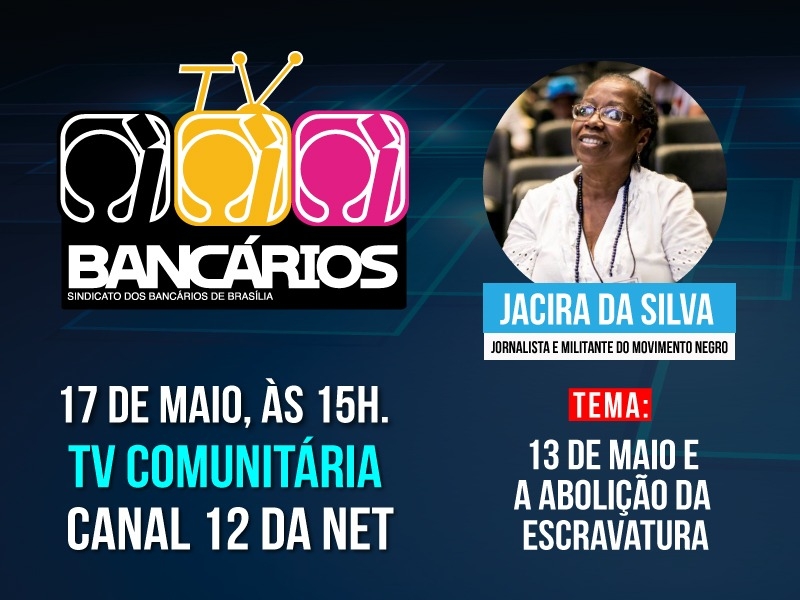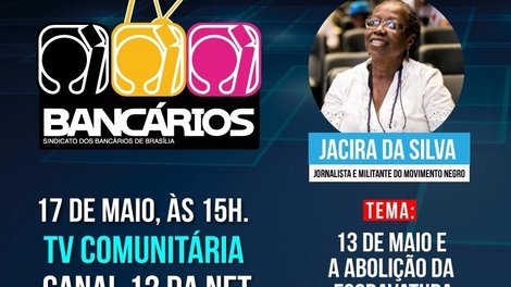 A edição desta semana do programa TV Bancários na TV Comunitária remonta a história que cerca o 13 de maio e a Lei Áurea, que decretou o fim da escravidão legal após três séculos de trabalho forçado. Como convidada, o programa recebe a jornalista e militante do movimento negro, Jacira da Silva.