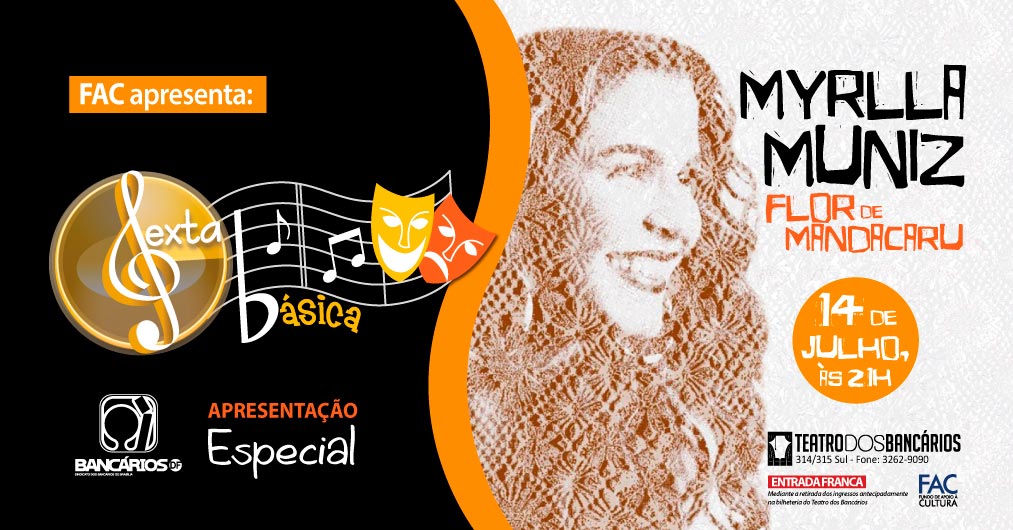 Cantora e violista, a cearense Myrlla Muniz é a atração da edição especial de 2017 do projeto cultural de sucesso do Sindicato, o Sexta Básica. O show, em comemoração ao pré-lançamento do DVD Flor de Mandacaru, está marcado para 14 de julho, no Teatro dos Bancários, com entrada franca.