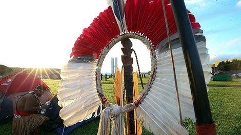 Brasília – Como acontece todos os anos, perto de 2 mil índios de todo o Brasil estão na capital do país no Acampamento Terra Livre (ATL), que é realizado em sua 15ª edição. Outros 2 mil, segundo os organizadores, estão a caminho, em caravanas de ônibus, para participar dos encontros e atos públicos a serem realizados até sexta-feira (26). Na programação, em meio ao cenário marcado pelo colorido dos cocares e pinturas de várias tribos e etnias que contrastam com as curvas dos monumentos de Brasília, o clima é de apreensão para que os protestos sejam realizados sem confrontos nem repressão.