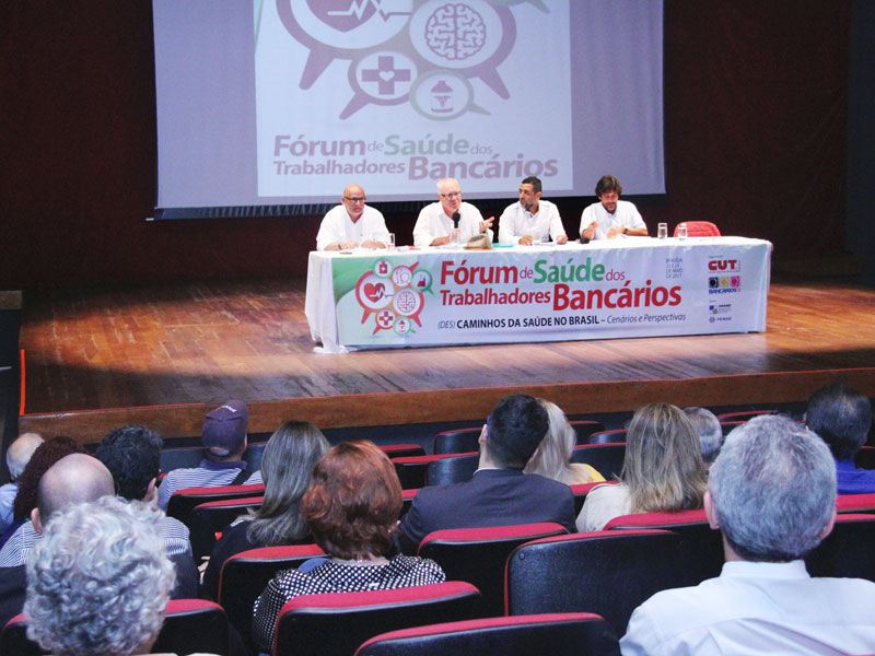 A manhã desta terça-feira (23) foi marcada por reflexões e inquietações provocadas por especialistas em saúde pública que participaram do segundo dia do 1º Fórum de Saúde dos Trabalhadores Bancários realizado pelo Sindicato, em sua sede, numa parceria com a CUT Brasília, Fenae e Anabb.