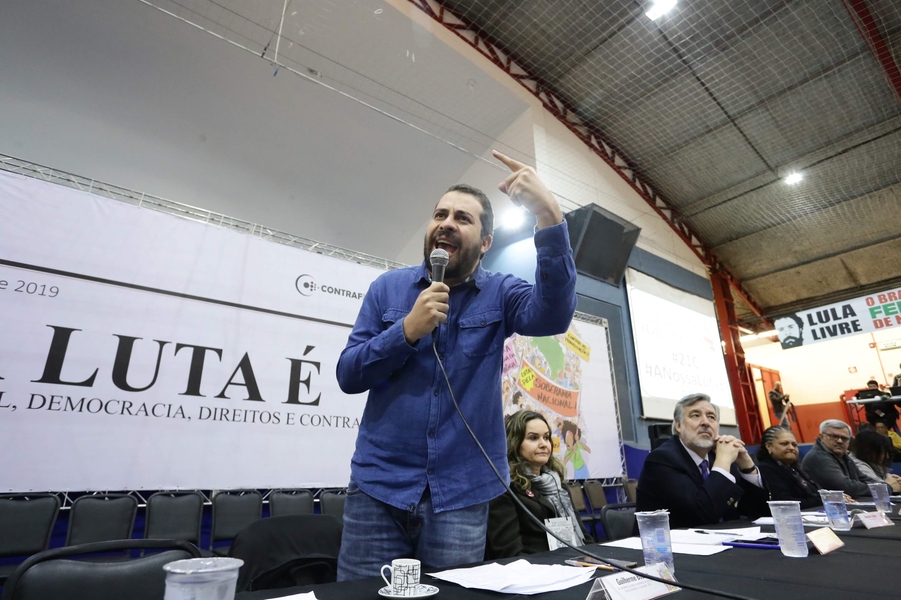 O filósofo, coordenador nacional do Movimento dos Trabalhadores Sem Teto (MTST) e da frente de movimentos populares Povo Sem Medo, Guilherme Boulos, saudou as delegadas e delegados da conferência e ressaltou que a categoria bancária sempre esteve na linha de frente da luta sindical e social do país.