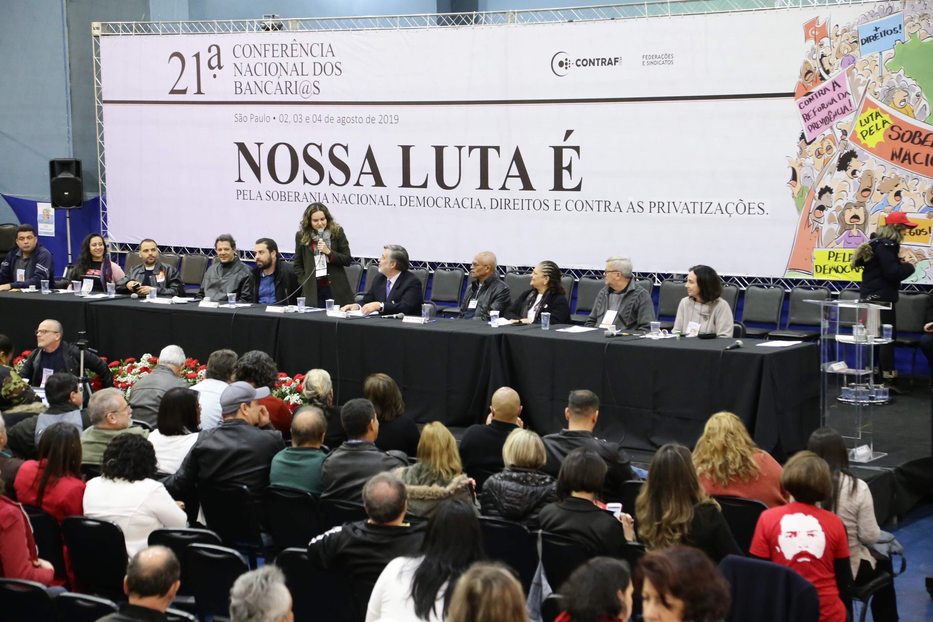 A 21ª Conferência Nacional dos Bancários segue na tarde deste sábado, com mesas de debates sobre a soberania nacional e a reforma da Previdência. A programação continua no domingo (4).