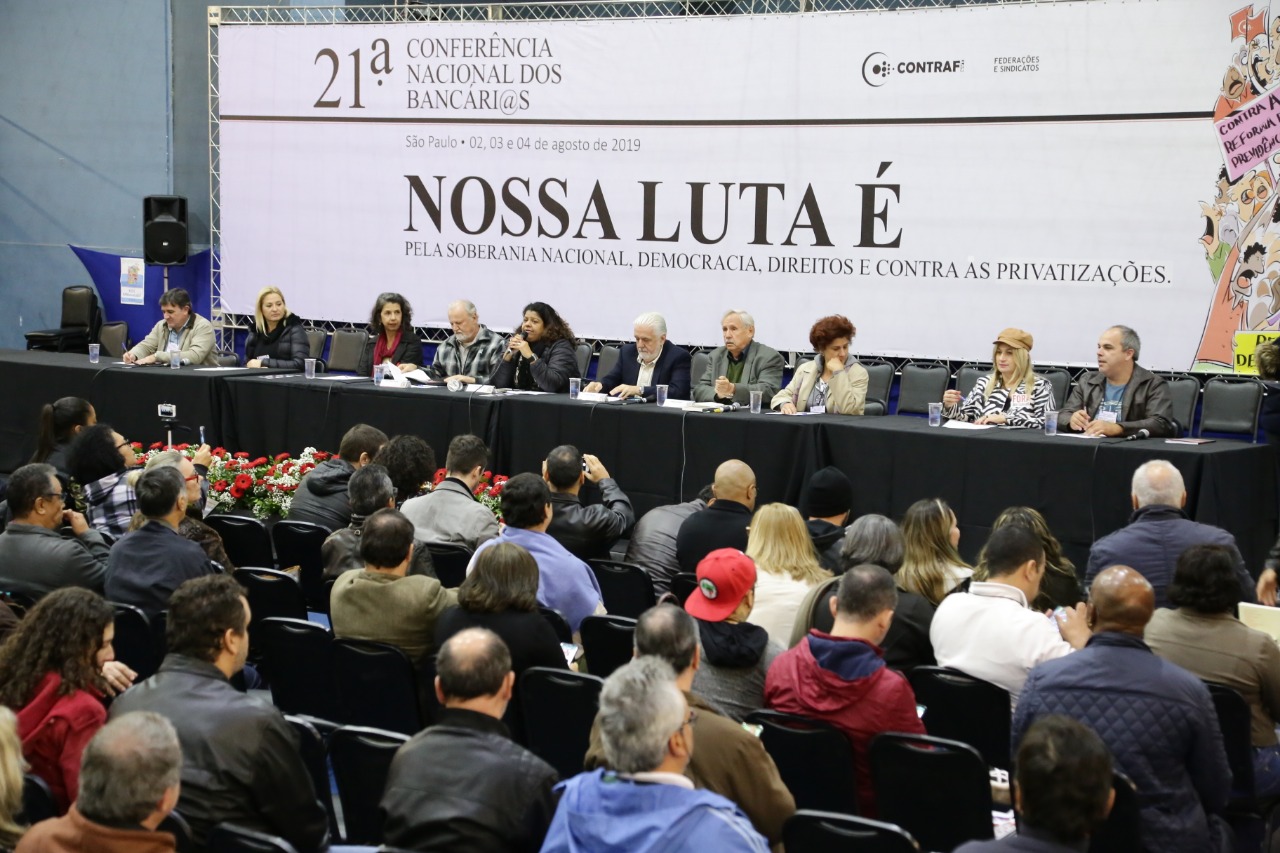 A soberania nacional foi o tema da segunda mesa de debates da 21º Conferência Nacional dos Bancários, na tarde deste sábado (3), realizada em São Paulo. Joao Pedro Stédile, dirigente nacional do Movimento dos Trabalhadores Rurais Sem Terra (MST), começou sua participação dando os parabéns aos organizadores da 21º Conferência Nacional dos Bancários pela escolha do tema. “A soberania nacional é um tema que as forças populares ainda não assimilaram a sua importância.”