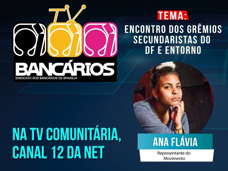 No TV Bancários na TV Comunitária da última semana, você conferiu mais sobre o 2º Encontro dos Grêmios Secundaristas do DF e entorno. Como convidada o programa recebeu Ana Flavia Oliveira Barbosa, umas das representantes do movimento.