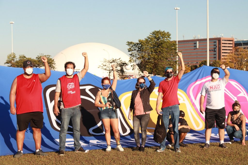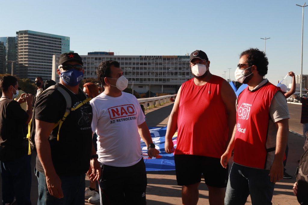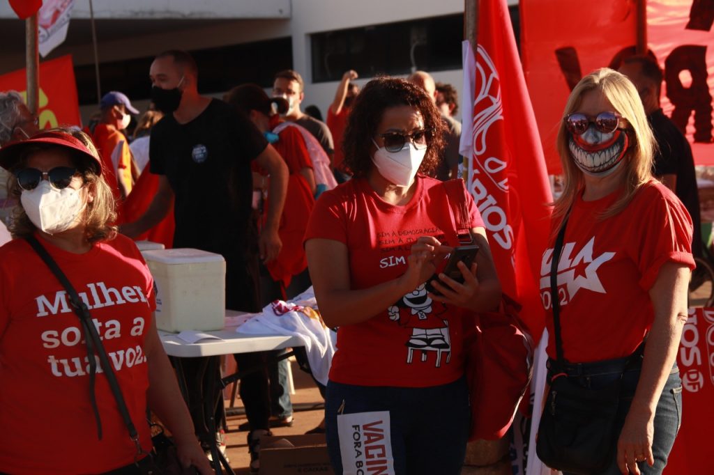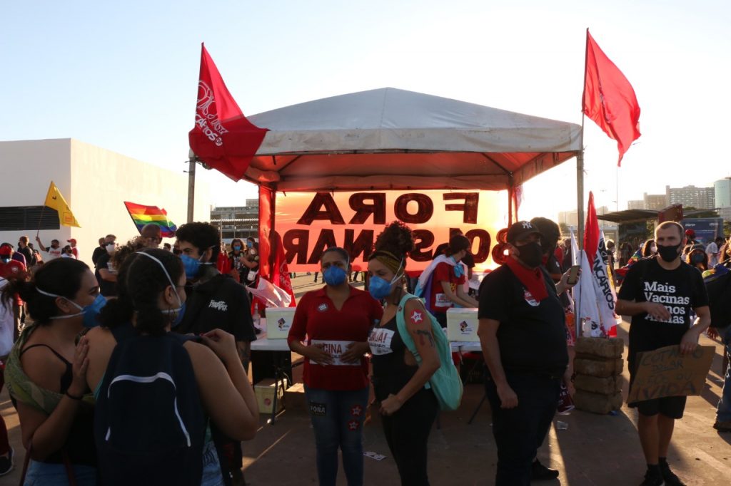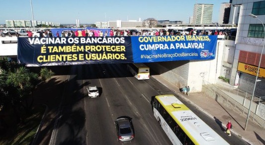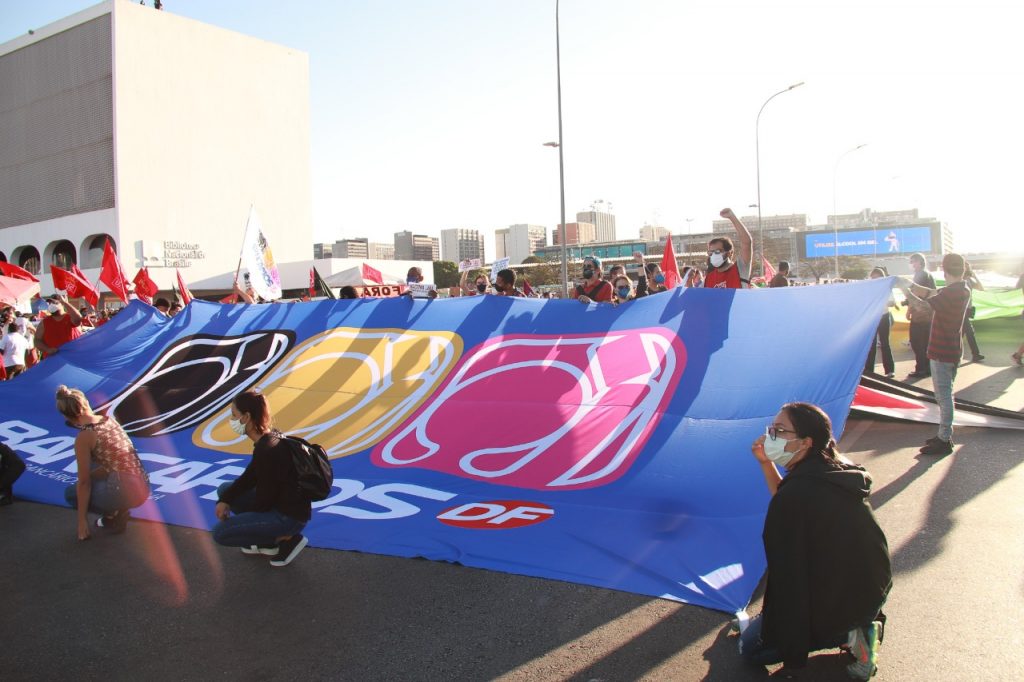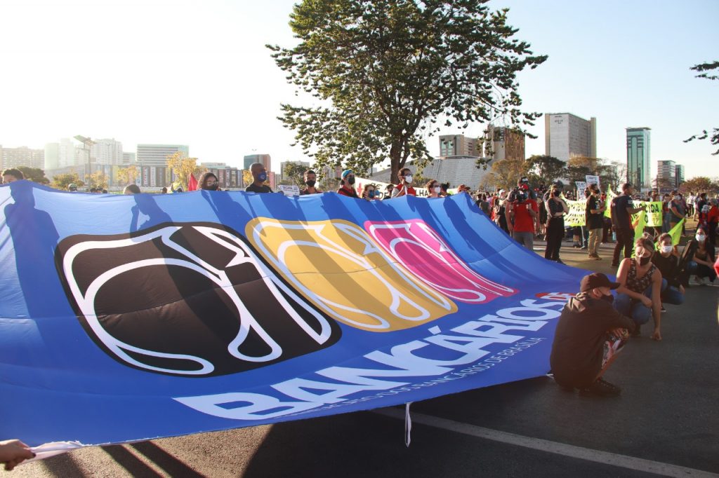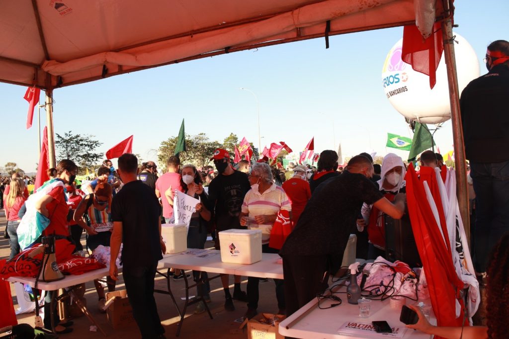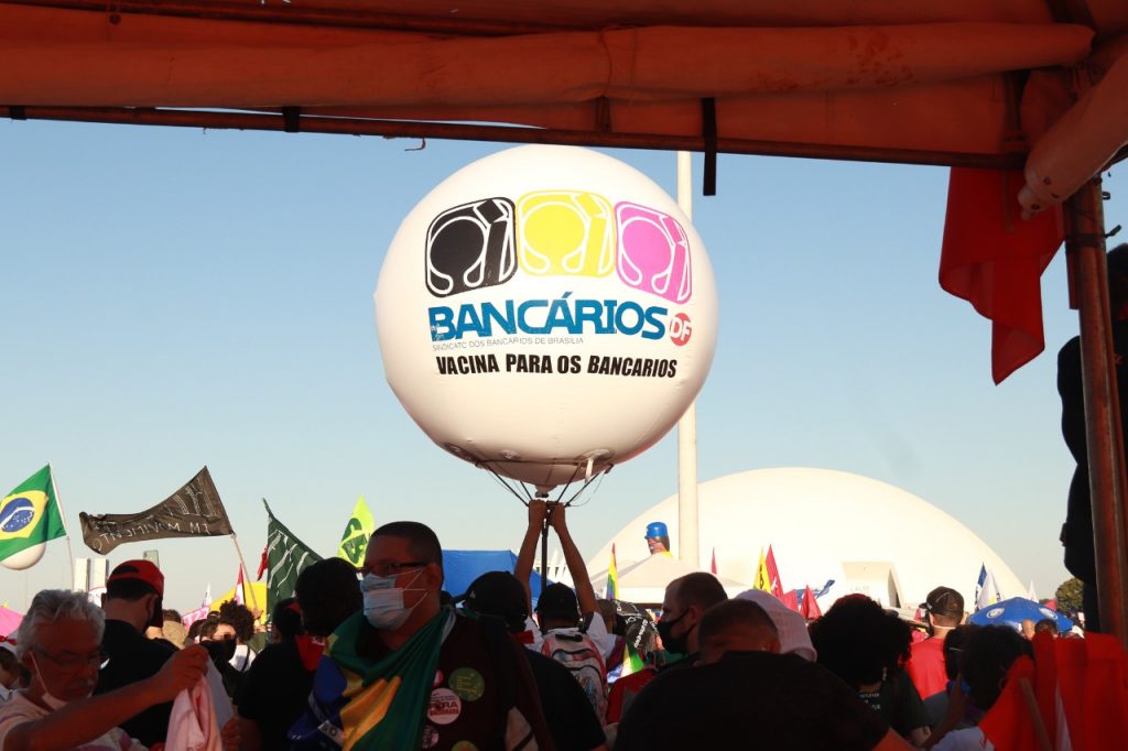 O Sindicato engrossou no último sábado (3) as fileiras dos protestos que levaram às ruas de todo o país e até mesmo do exterior milhares de manifestantes contra o governo de Jair Bolsonaro e pela rapidez na vacinação. O ato em Brasília ocorreu na Esplanada dos Ministérios e contou com a presença de bancários e bancárias. Confira no vídeo e nas imagens abaixo como foi a participação do Sindicato: